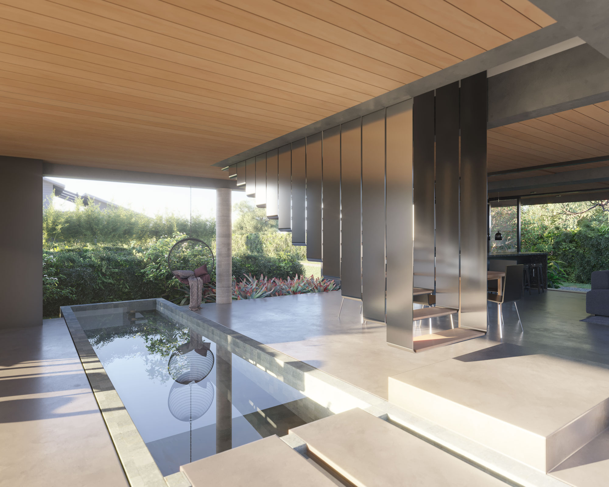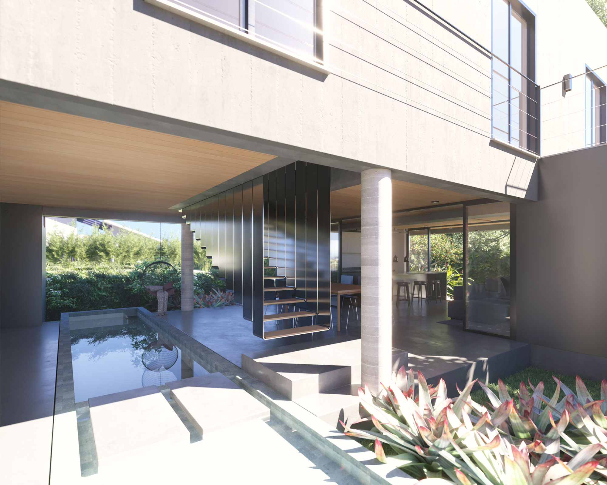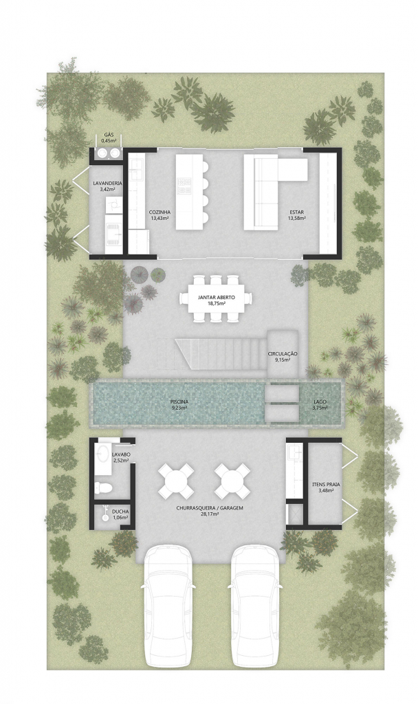Casa com dois andares. Área social ampla, aberta e integrada com exterior, unificando piscina e churrasqueira. Conta ambiente íntimo com estar, jantar e cozinha protegidos. Área íntima com 4 suítes. E uma escada escultural de tirar o fôlego.
