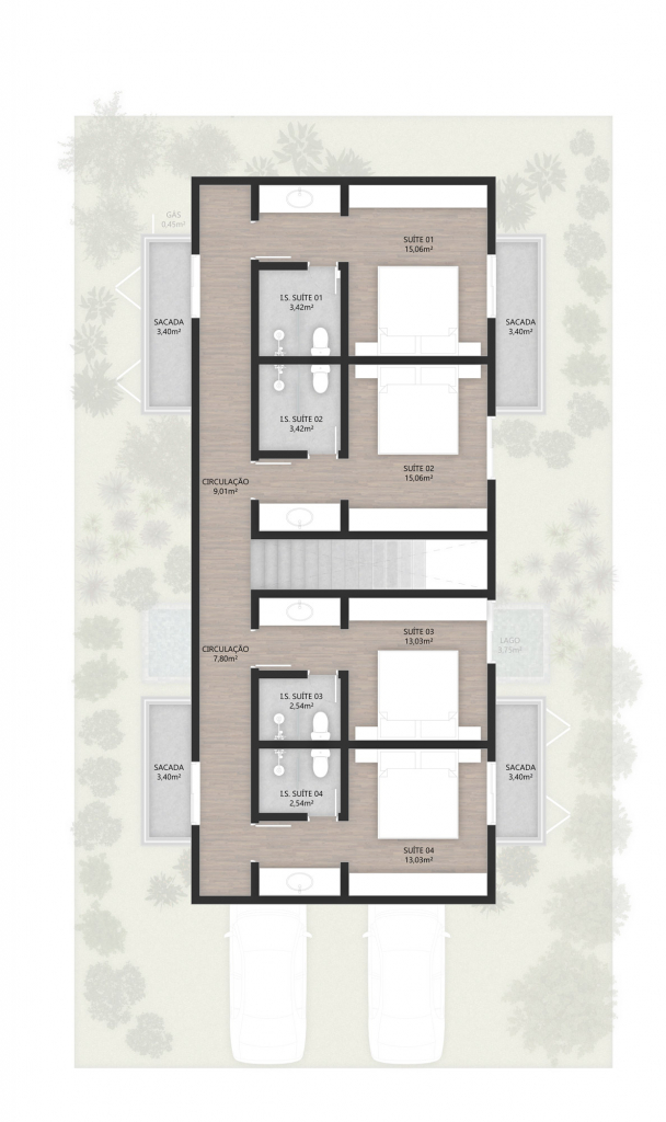 Suas 4 suítes em segundo piso entregam a área social ao convívio das famílias, ao mesmo tempo que proporcionam conforto e exclusividade para hóspedes ou moradores.