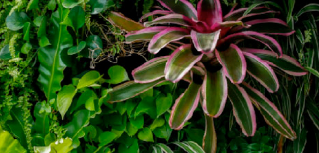 Lindos canteiros ricos em bromélias gigantes e médias. Além de pequenas helicônias, seixos rolados em vários tons, em harmonia com flores como a estrelitzia.